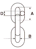 | Диаметр цепи D, мм | Рабочая нагрузка, тн | Размер А, мм | Размер В, мм | Вес одного метра цепи, кг | Код изделия |